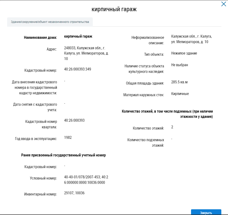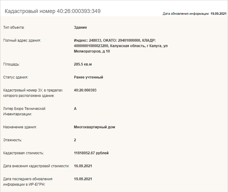 Данные объекта жилого фонда